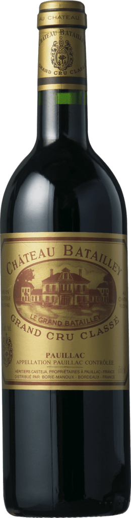 La robe est d’un rouge sombre et profond. Le nez, d’une fraîcheur surprenante, est complexe et délicat. Les arômes de cassis et de cerise se mêlent à des notes plus florales de pivoine, puis les nuances fumées et mentholées des grands cabernets de la rive gauche se révèlent. La bouche tient toutes ses promesses. Suave et crémeuse à l’attaque, compacte et savoureuse en milieu de bouche, elle s’achève sur une finale puissante et savoureuse. Beaucoup de sève et de fraîcheur dans ce Batailley.